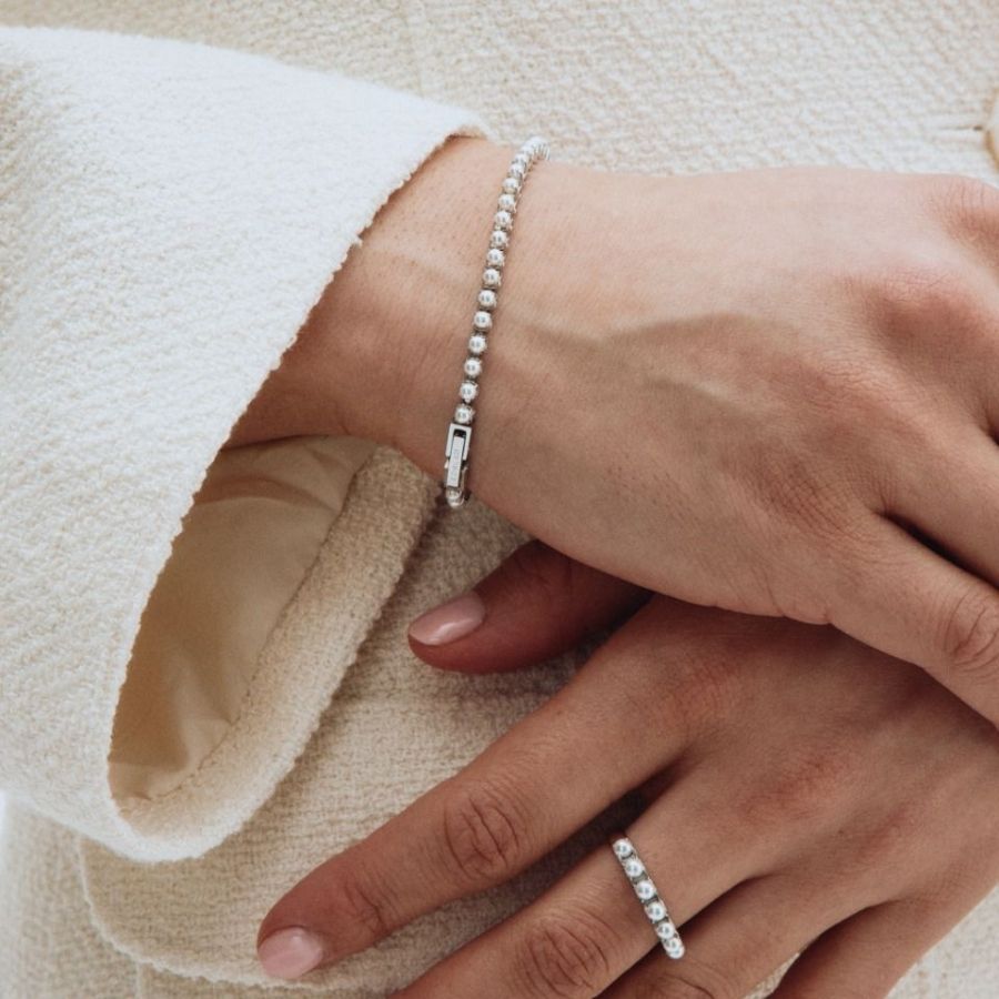 Lilo-sarjan tunnusomainen design muistuttaa tennisrannekorua, mutta timanttien sijaan korussa on upeita helmiäishelmiä, jotka tuovat ilmeeseen luonnollista pehmeyttä ja valoa. Rannekoru on valmistettu kiiltävästä ruostumattomasta teräksestä, mikä tekee siitä kestävän, huolettoman ja pitkäikäisen – se säilyttää loistonsa vuodesta toiseen.