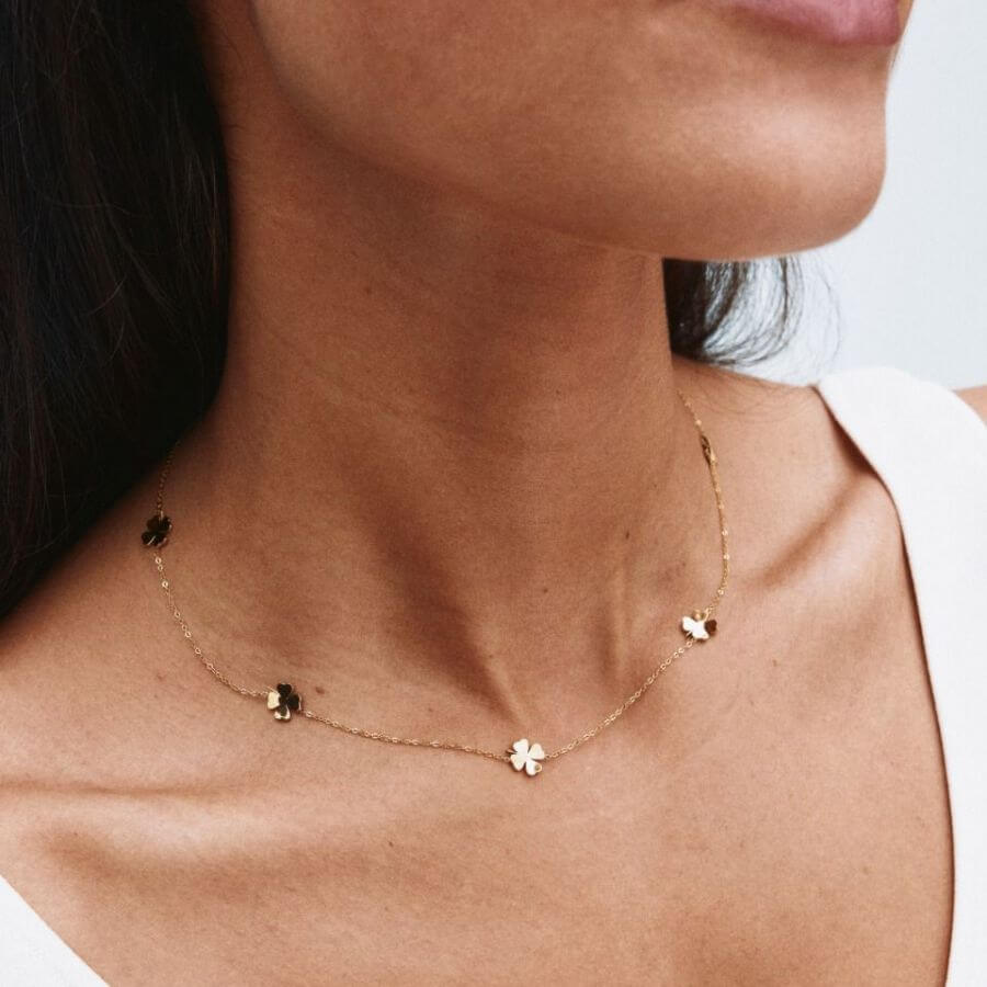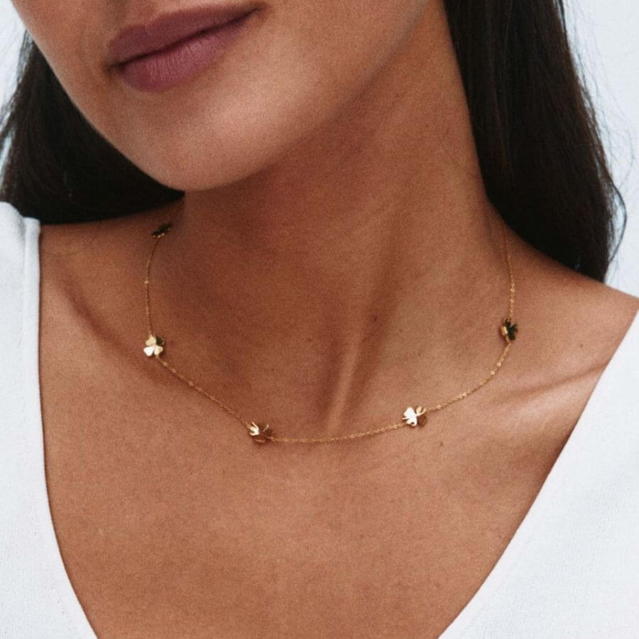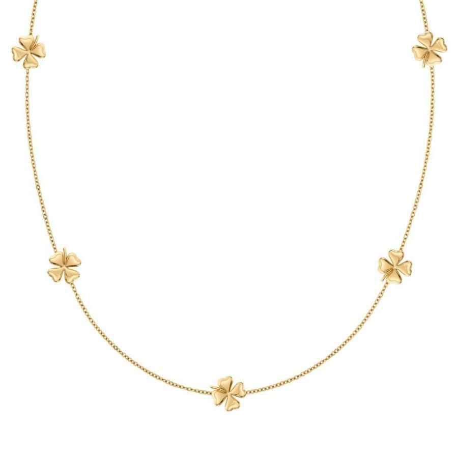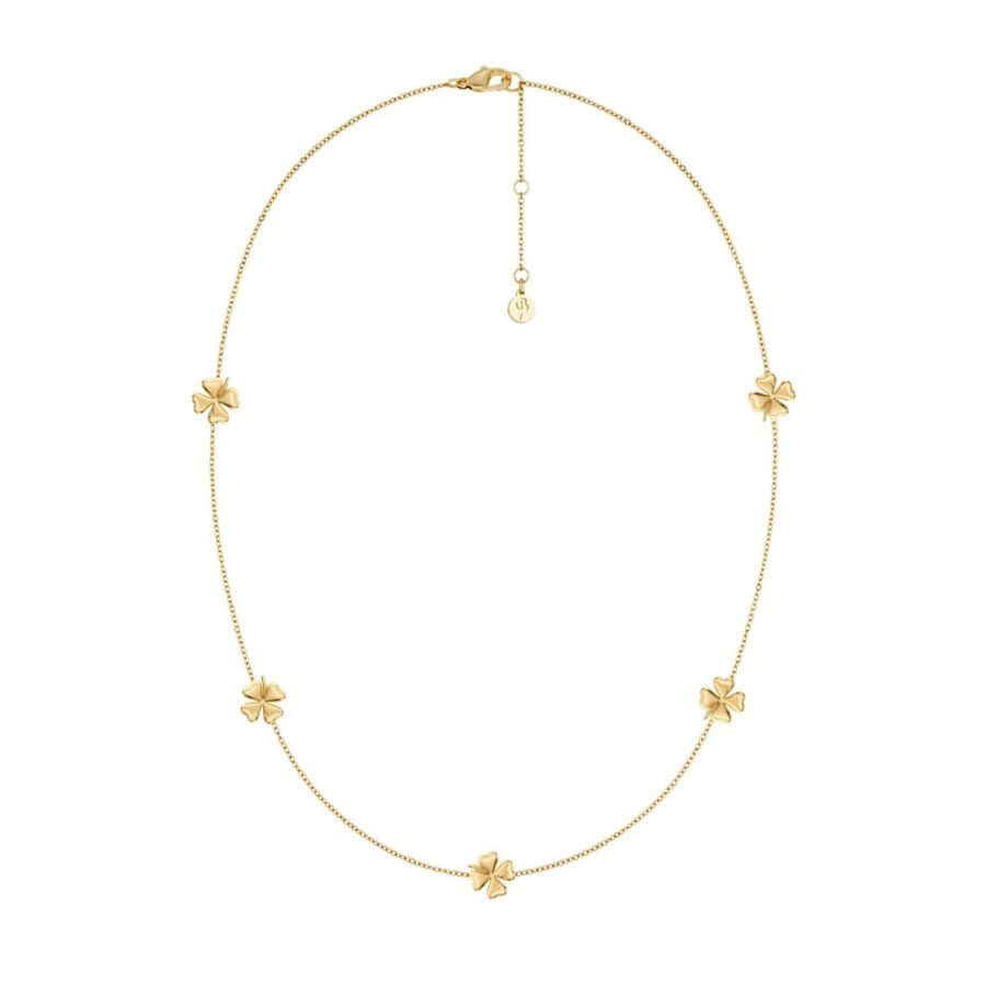 Sinulla on aina onni matkassa Lucky Mini -sarjan kanssa, joka on suositun Lucky-klassikkomme miniversio. Tämän 14 karaatin kullalla kullatun viehättävän kaulakorun kauniissa ketjussa on viisi tyyliteltyä neliapilaa. Se on arvostettu lahja ja sopii hyvin yhteen sarjan muiden korujen tai Lucky-sarjan korujen kanssa.