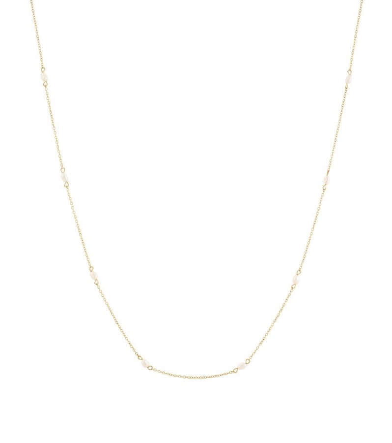 Siro ja elegantti kultainen Edblad Perla kaulakoru, jossa hohtavat pienet vaaleat makeanveden helmet. Helmistä jokainen on uniikki sillä niiden luonnollinen muoto on säilytetty. Koru on upea lisäys ja täydentää asun niin arkeen kuin juhlaan. Koru on valmistettu ruostumattomasta teräksestä ja pinnoitettu 14 karaatin kullalla. Helmet ovat kooltaan noin 2,5x5 mm. Ketju on säädettävissä pituuksiin 42-45 cm. Korussa tukeva papukaijalukko.