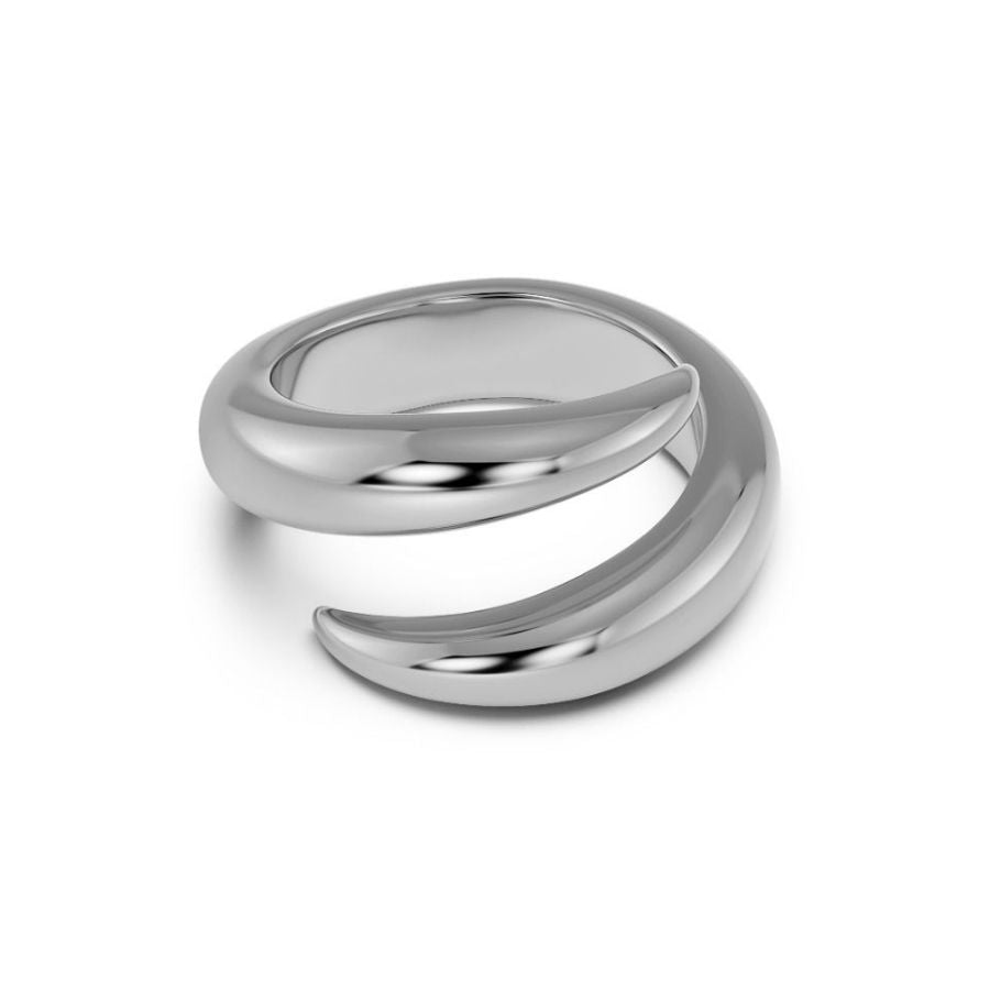 Edblad 129733 -sormus on valmistettu kiiltävästä ruostumattomasta teräksestä, jonka peilimäinen pinta heijastaa valoa ja tuo koruun modernin, viimeistellyn ilmeen. Avoin, kiertyvä muoto tekee sormuksesta dynaamisen ja erottuvan, mutta sen sileä ja kaareva linja takaa mukavan istuvuuden jokapäiväiseen käyttöön.