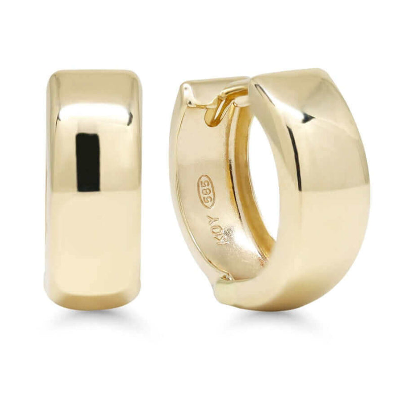 Korvakorut on valmistettu laadukkaasta 14 karaatin keltakullasta. Kultakorvarenkaat A-E0200 leveys on 4,5 mm ja halkaisija 11 mm. Kulta korvarenkaat leveä A-E0200 on saranakiinnitys. Nämä kultakorvakorut on valmistanut Korutuote Oy.