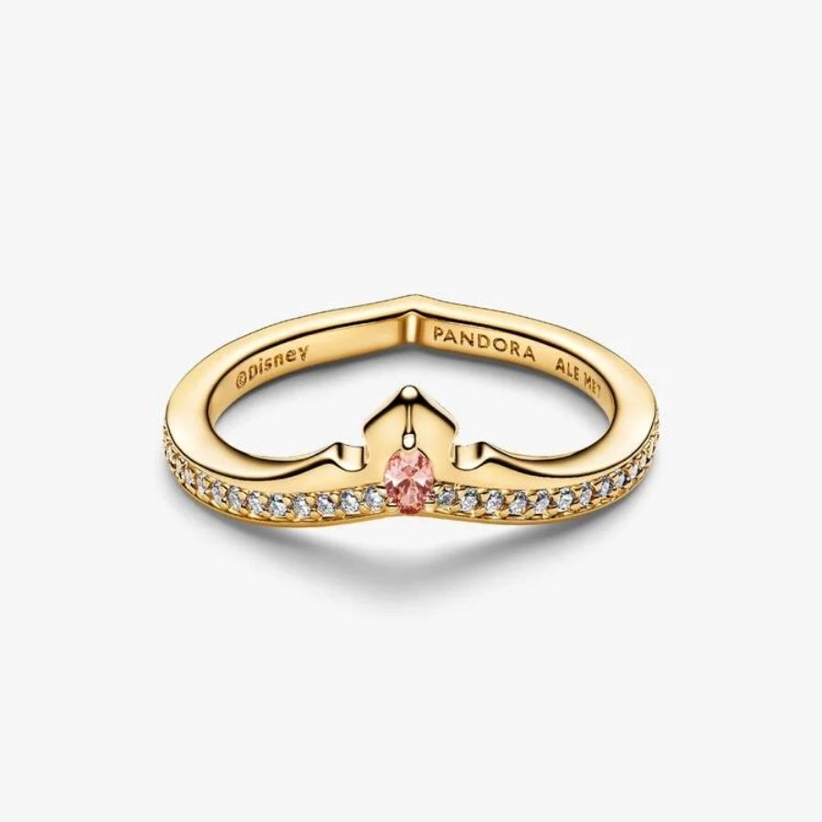 Pandora Disney Aurora Sormus 164334C01 on elegantti ja herkkä koru, joka tuo satumaista kauneutta arkeen ja juhlaan. Sormuksen kaunis, kevyesti kaartuva muoto ja sen kruunua muistuttava etuosa tuovat mieleen Disneyn Prinsessa Ruususen lumoavan estetiikan.