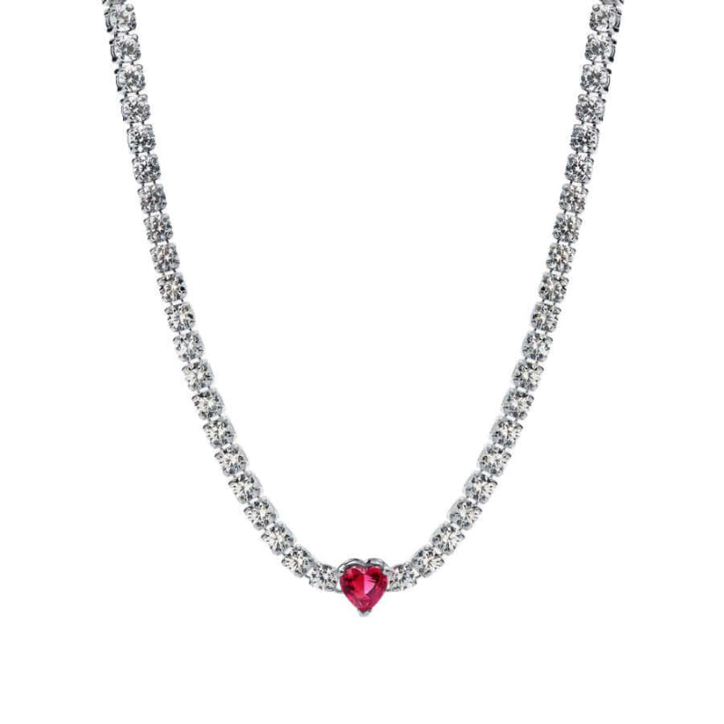 - Kaulakorua koristaa upea punaisen värinen tekokristalli.
