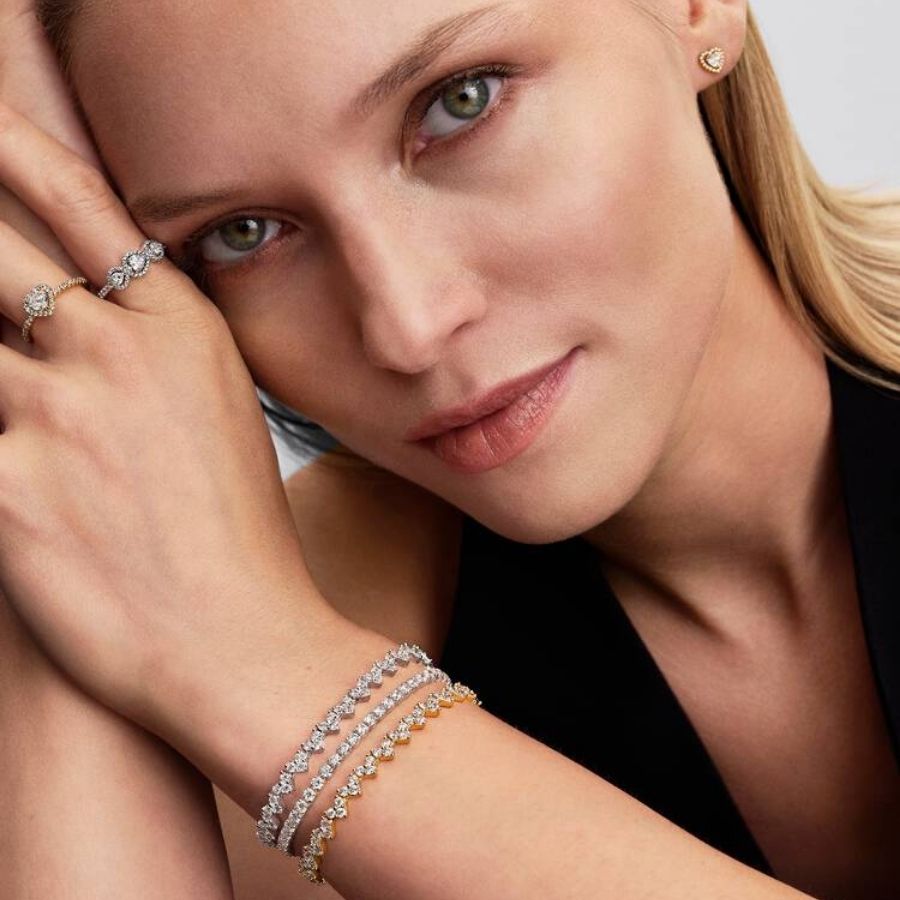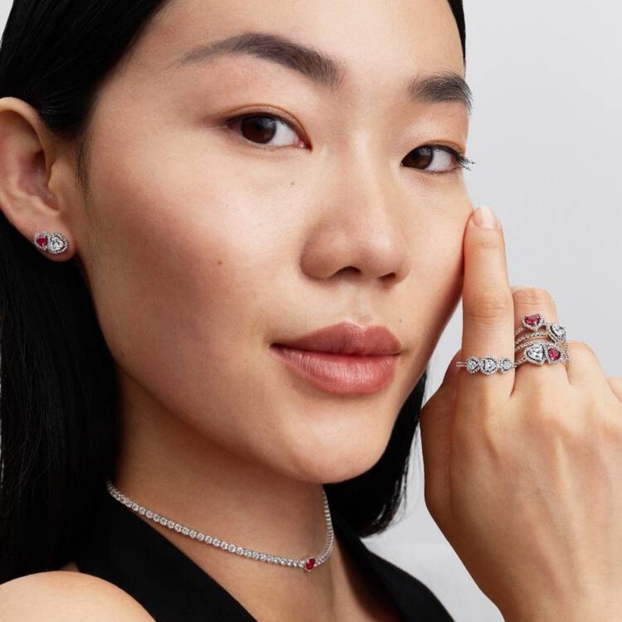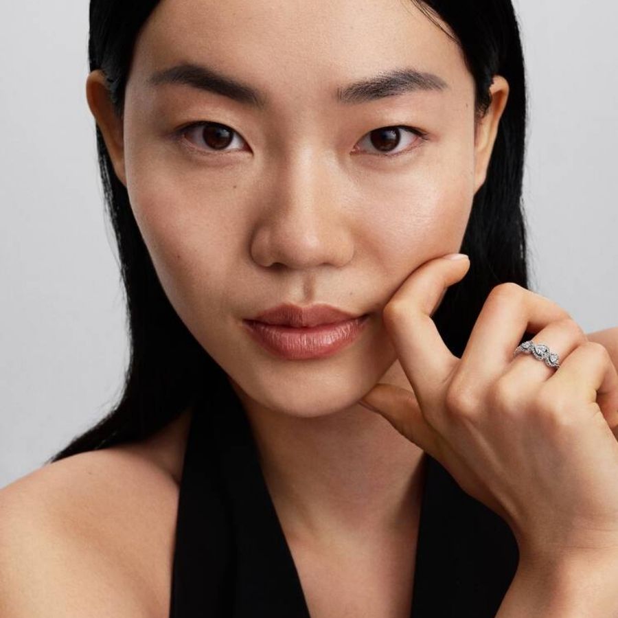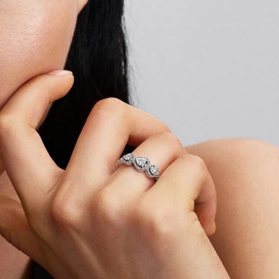 Pandora 194413C01 -sormus on valmistettu sterling hopeasta, joka antaa korulle puhtaan, kirkkaan hehkun. Sormuksen etuosaa koristavat kolme sydämenmuotoista kirkasta zirkoniaa, jokainen ympäröitynä pienistä kivistä muodostuvalla sädekehällä. Tämä hienostunut halo-tyyli voimistaa keskikivien kimallusta ja luo sormukseen ylellisen, valoa monisuuntaisesti heijastavan pinnan. Rungon siro muotoilu tekee kokonaisuudesta kevyen ja elegantin, täydellisen jokapäiväiseen käyttöön tai juhlavampiin asukokonaisuuksiin.