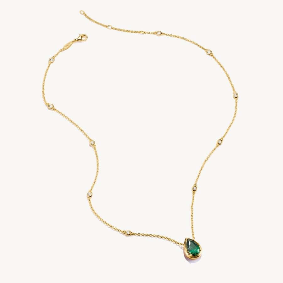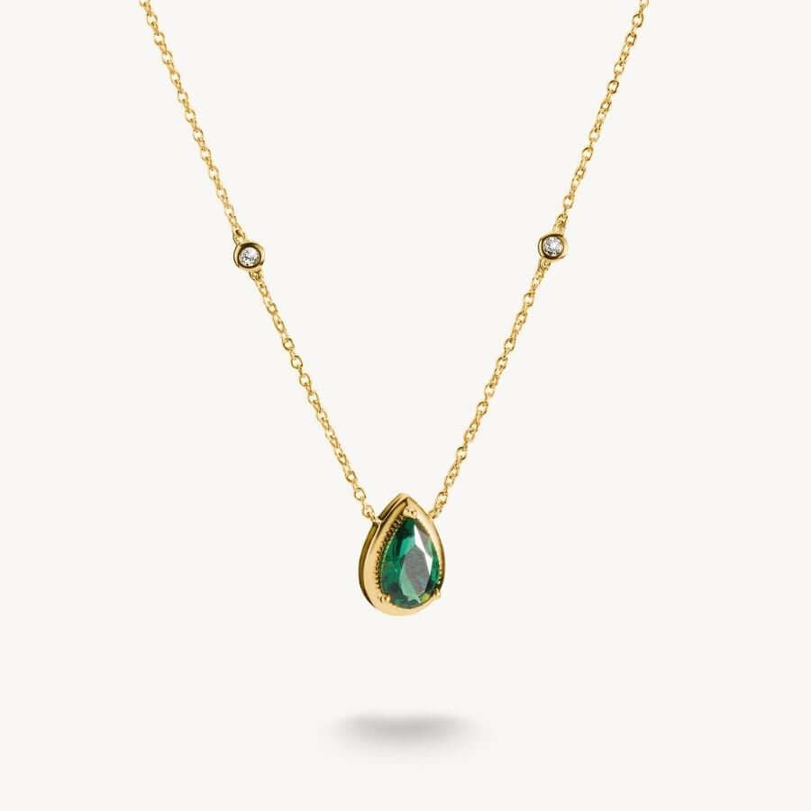 Thomas Sabo Elyndra Teardrop Kaulakoru KE2331-971-6 on hienostunut ja tasapainoa huokuva koru, jossa lämmin kullan sävy ja eloisa vihreä kivi muodostavat harmonisen kokonaisuuden. Pisaranmuotoinen muoto ja kevyt säihke tekevät kaulakorusta elegantin valinnan hetkiin, joissa haluat yhdistää syvyyden ja vaivattoman tyylin.