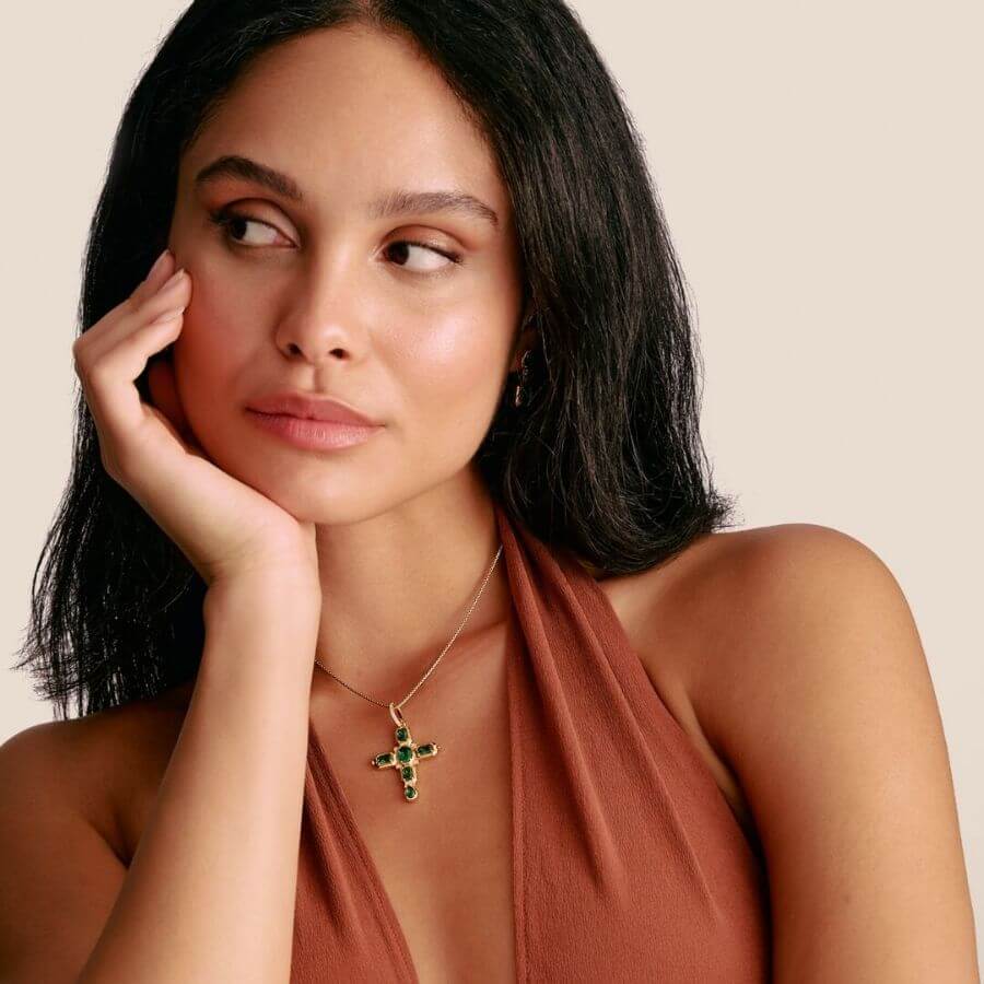 Thomas Sabo Risti Green Stone Riipus PE987-971-6 on voimakas ja samalla hienostunut koru, joka yhdistää klassisen symboliikan moderniin muotokieleen. Smaragdinvihreät kivet ja kultainen sävy luovat rauhallisen mutta merkityksellisen kokonaisuuden, jossa korostuvat selkeys, sisäinen suunta ja henkilökohtainen voima.